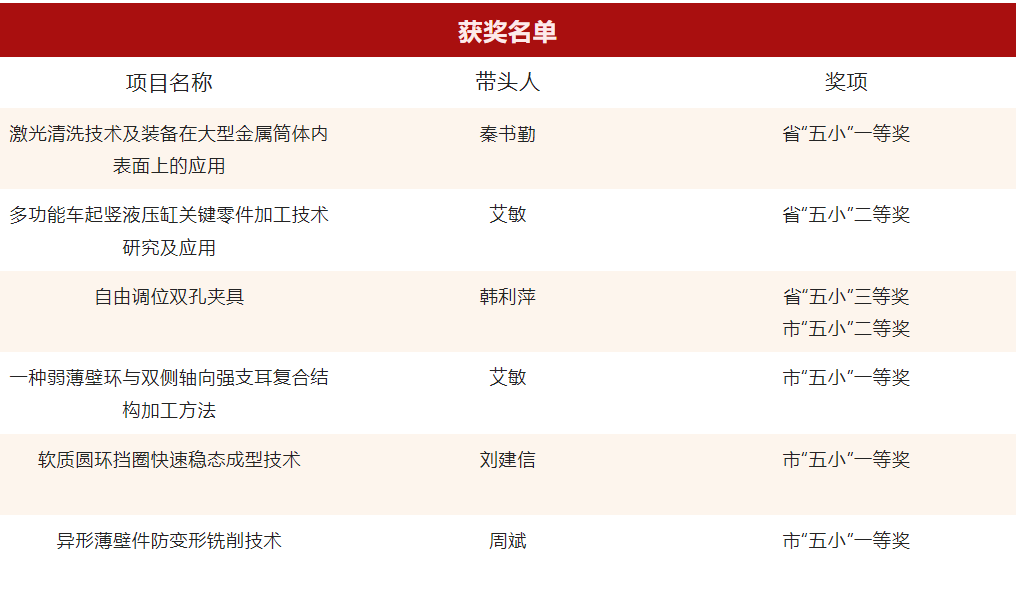 近年来,清华装备公司广大员工立足岗位、集智创新、协同攻关,推动创新活动不断深化升级、提质增效,产生创新成果450余项,其中获国家专利30余项,获山西省“五小”创新成果20余项。