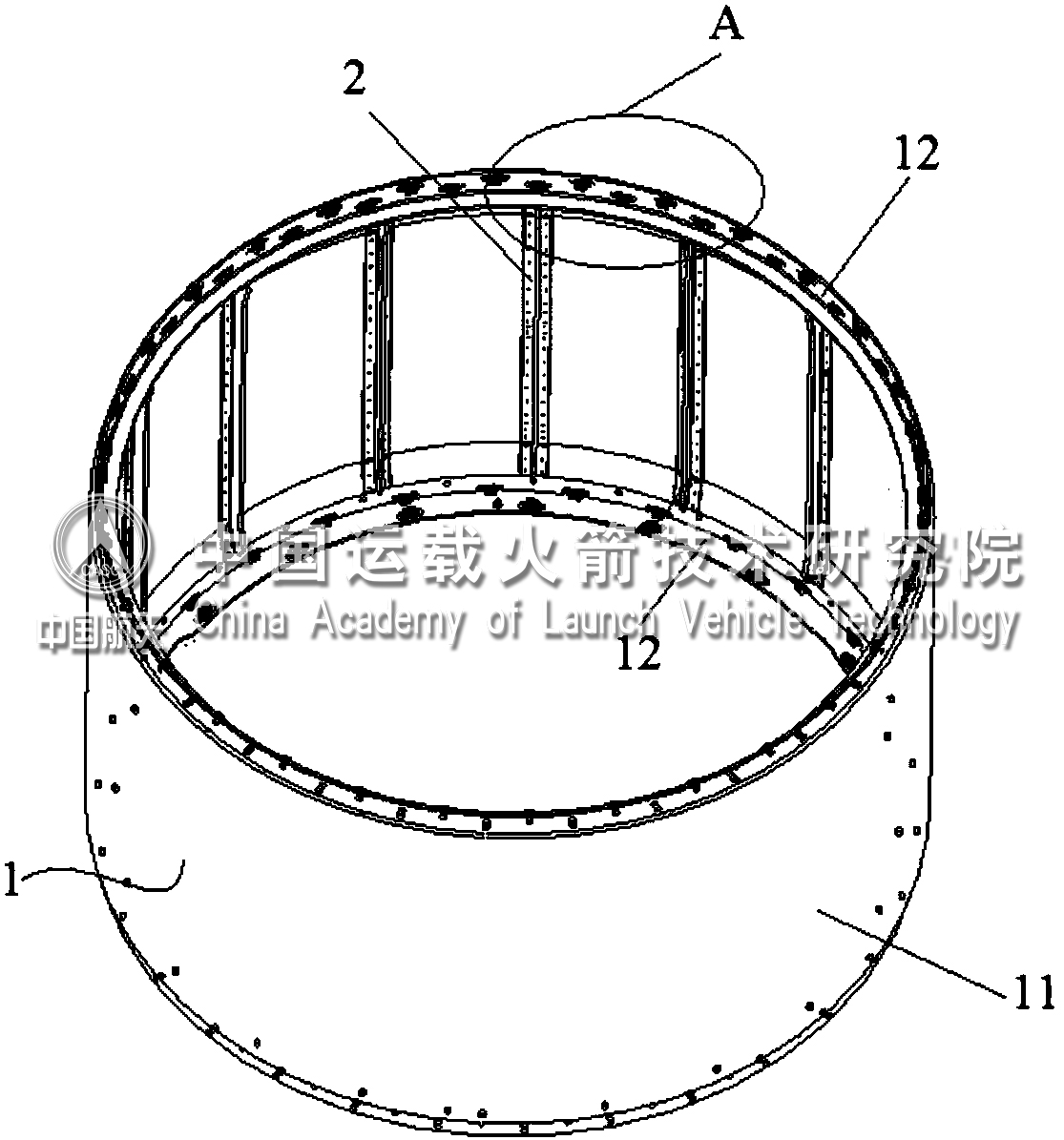 由中国运载火箭技术研究院战术事业部研发的“一种桁条壳体”获国家发明专利。 目前的装备壳段结构,主要由端框-蒙皮-桁条结构和网格筋壳体结构组成,装配时需要专用铆接型架,加工精度较高,对工人的操作要求较高。网格筋壳体重量较重,加工周期较长,对机加的能力要求较高。 本发明为回转体结构,不需专用铆接型架,对加工设备、工人的操作水平要求都不高,降低了装配难度和强度,有效提高了加工效率。壳体重量低,也可有效提高装备性能。