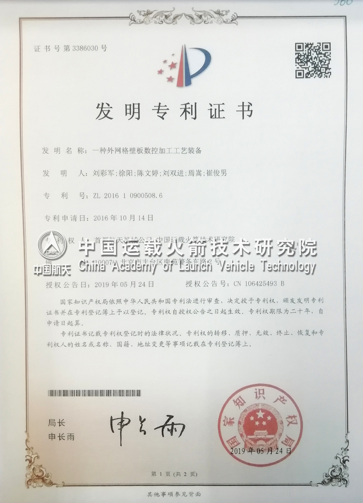 中国运载火箭技术研究院首都航天机械有限公司的“一种外网格壁板数控加工工艺装备”获国家发明专利。 某型号火箭的壁板采用先滚弯后机械铣削的加工方式,滚弯后的壁板与胎具不够贴合,使网格剩余蒙皮厚度产生较大误差。为了控制壁板剩余蒙皮厚度与精度,需要使滚弯后的壁板与胎具有良好的贴合度。 本发明提高了弯曲壁板与弧胎的贴合度,实现了高精度、高合格率、低应力的外网格壁板的制造。